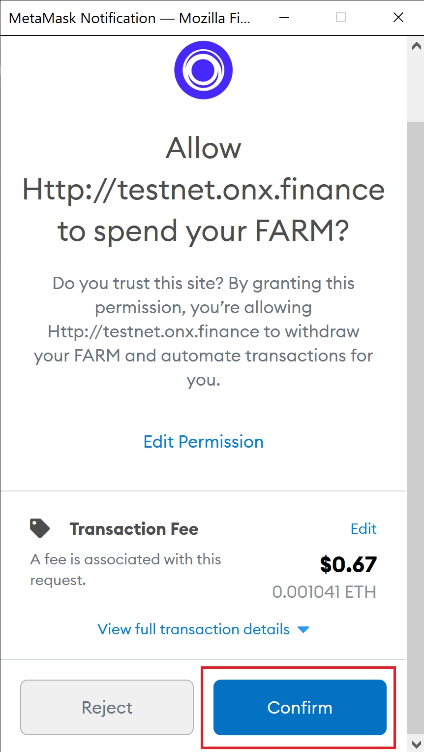 9. To harvest ONX earned so far, click the down arrow key on the right side of the card, which will display “Harvest” on scroll.